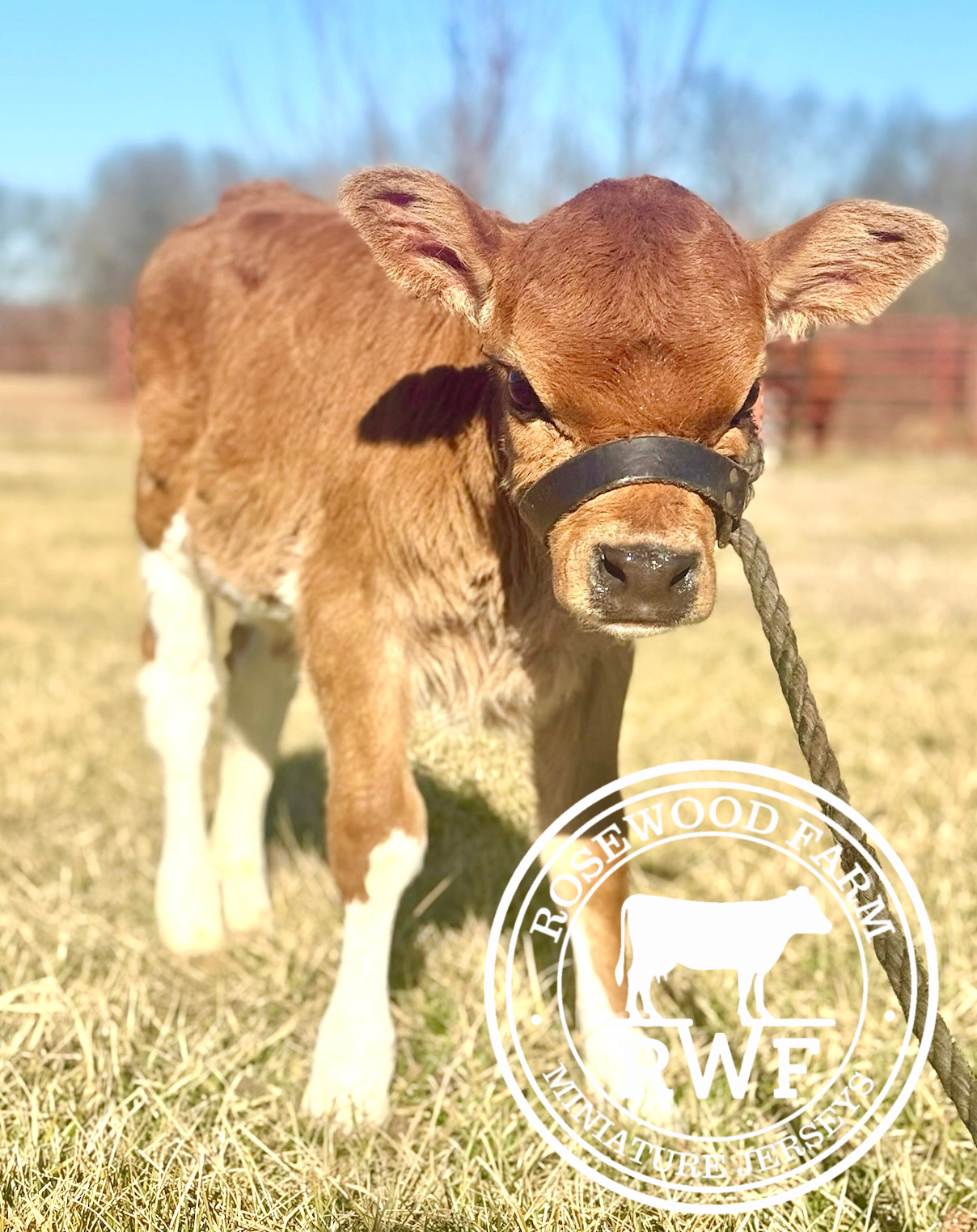 This gorgeous girl is perfectly marked with four white socks and a star - she’s the ideal in the horse world. She is very sweet and the most common mini Jersey size at birth at 22 inches. She was born 12/30/25, is A2/A2, heterozygous polled, negative chondrodysplasia and will be parent verified to Cedar Ridge Otis and DFF Crown Jewell, our most popular breeding.